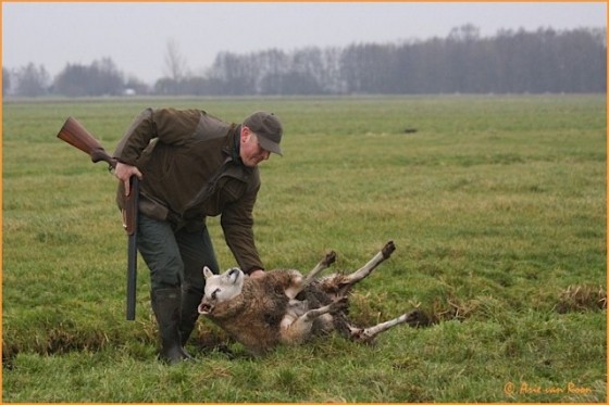 Paul Watson (zonder baard) te herkennen die een schaap redt uit zijn benarde